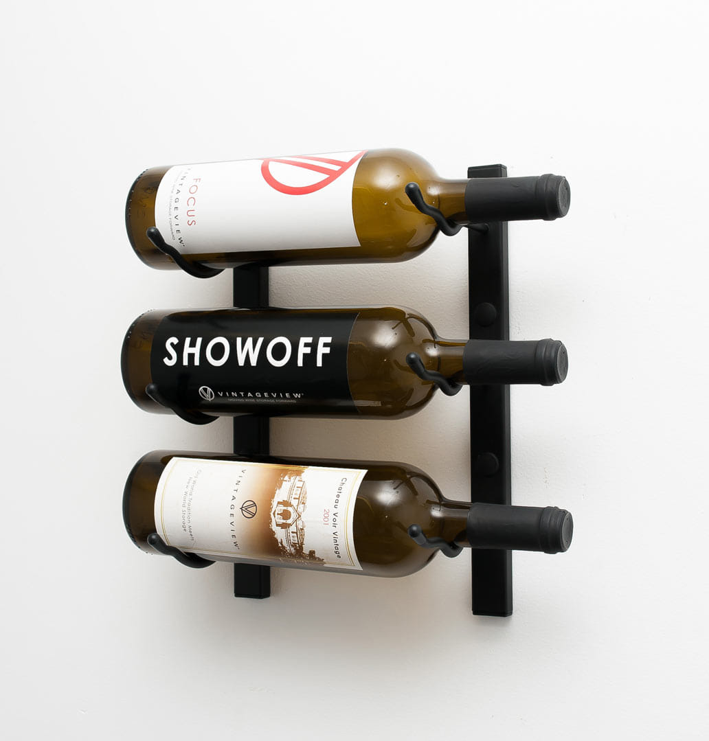 Een van onze populairste zwarten stalen wijnrekken is het Wijnrek Three Black. Dit robuuste, metalen rek biedt ruimte aan 3 wijnflessen in 3 rijen en is door zijn luxe uitstraling een gewilde decoratie van particulieren en kleine restaurants. Presenteer uw wijnen op spectaculaire wijze! Onze wijnrekken worden geleverd met bevestigingsmateriaal en u betaalt geen verzendkosten.
