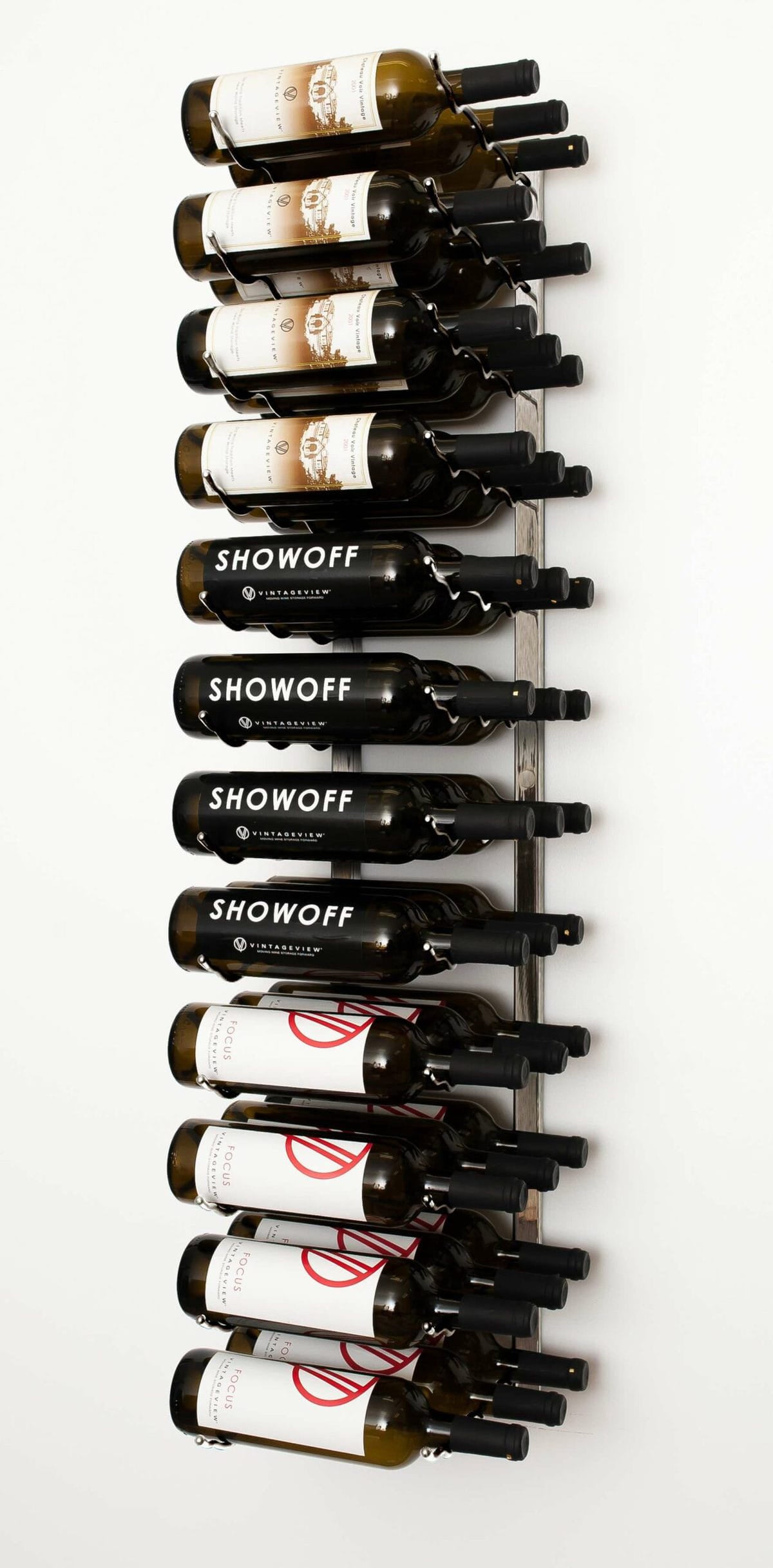 Het grootste platinum wijnrek dat te verkrijgen is bij Vintageview Nederland. In 12 rijen van 3 diep kunt u in totaal 36 flessen tentoonstellen aan de gasten in uw restaurant, wijnkelder of woning. Het chique metalen rek is gemaakt van hoogwaardig metaal en is door zijn modulaire koppelsysteem eenvoudig uit te breiden in het geval dat uw collectie nog groter is of wordt. Het Wijnrek Triple Twelve Platinum wordt gratis geleverd met bevestigingsmateriaal.